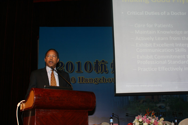 10月23日,由浙江大学主办的“2010杭州国际医学教育研讨会”在浙江宾馆成功召开。副校长来茂德教授热情洋溢的开幕词拉开了本次大会的帷幕,校党委副书记邹晓东教授、教育部高教司农林医药处高斌主任、浙江省教育厅副厅长李鲁教授和医学部名誉院长巴德年院士出席了会议并在开幕式上致辞,就目前国家医学教育的工作重点做了重要的指示,对浙江大学今后的医学教育事业发展具有深远的指导意义。