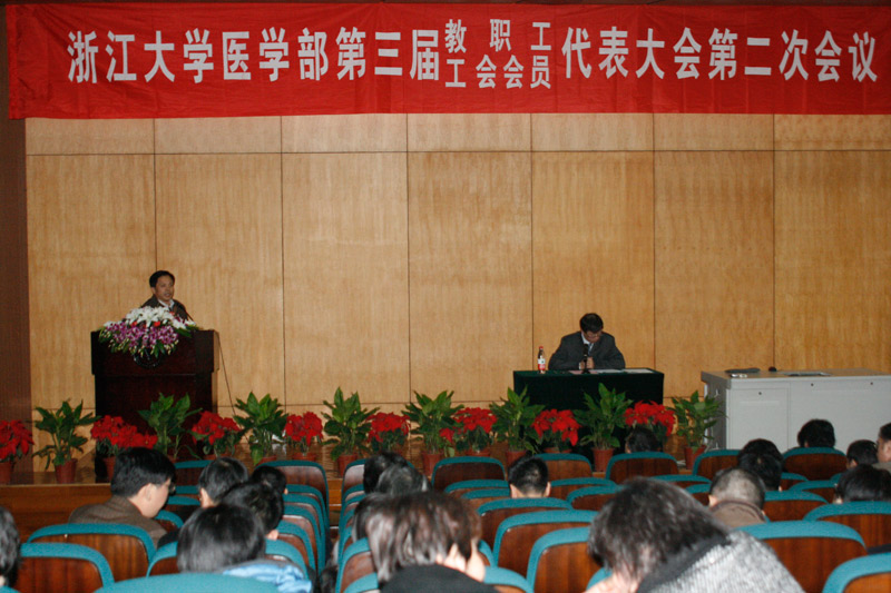 12月29日下午,医学部第三届教职工大会暨第三届工会会员大会第二次会议在科研辅楼大报告厅举行,170余名“双代会”代表和列席代表参加了大会。校紫金港校区党工委副书记、管委会副主任陈安莉, 紫金港工会办公室主任俞卫东应邀出席了大会。