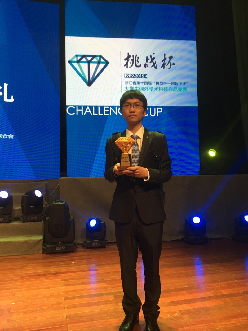 【喜报】热烈祝贺我院本科生陈鹏飞作品获得浙江省第十四届挑战杯特等奖