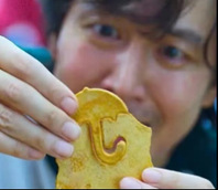 椪糖上有雨伞、星星、三角形、圆形等不同图案,在规定时间内把椪糖上的图案完整抠出。